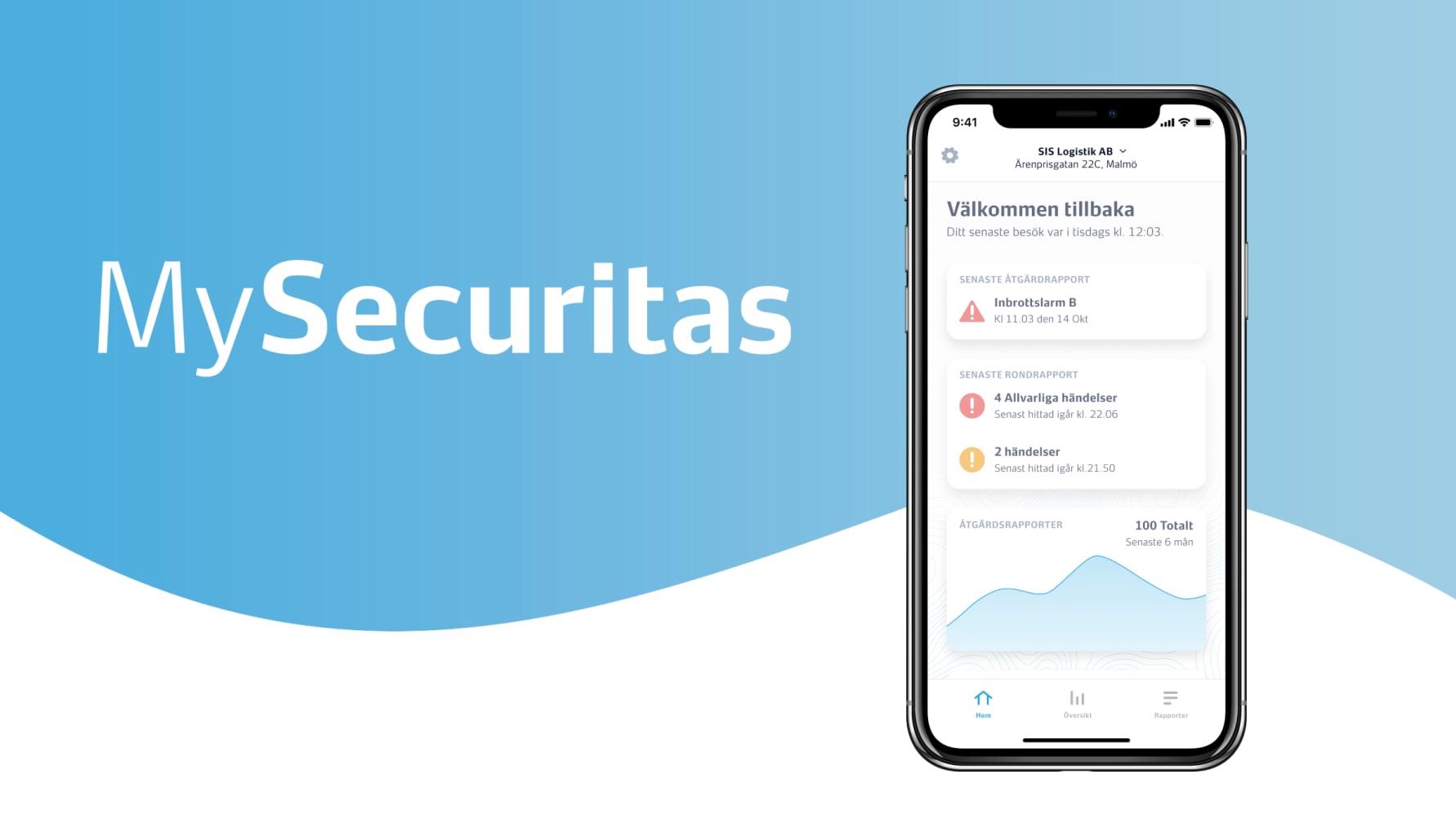 Securitas lanserar nu appen MySecuritas som ger företagskunder en översikt på säkerhetssituationen direkt i sin mobil. Det är nästa steg för Securitas i den digitala övergången inom säkerhetsbranschen och ger kunderna tillgång till framtidens teknik och tjänster.